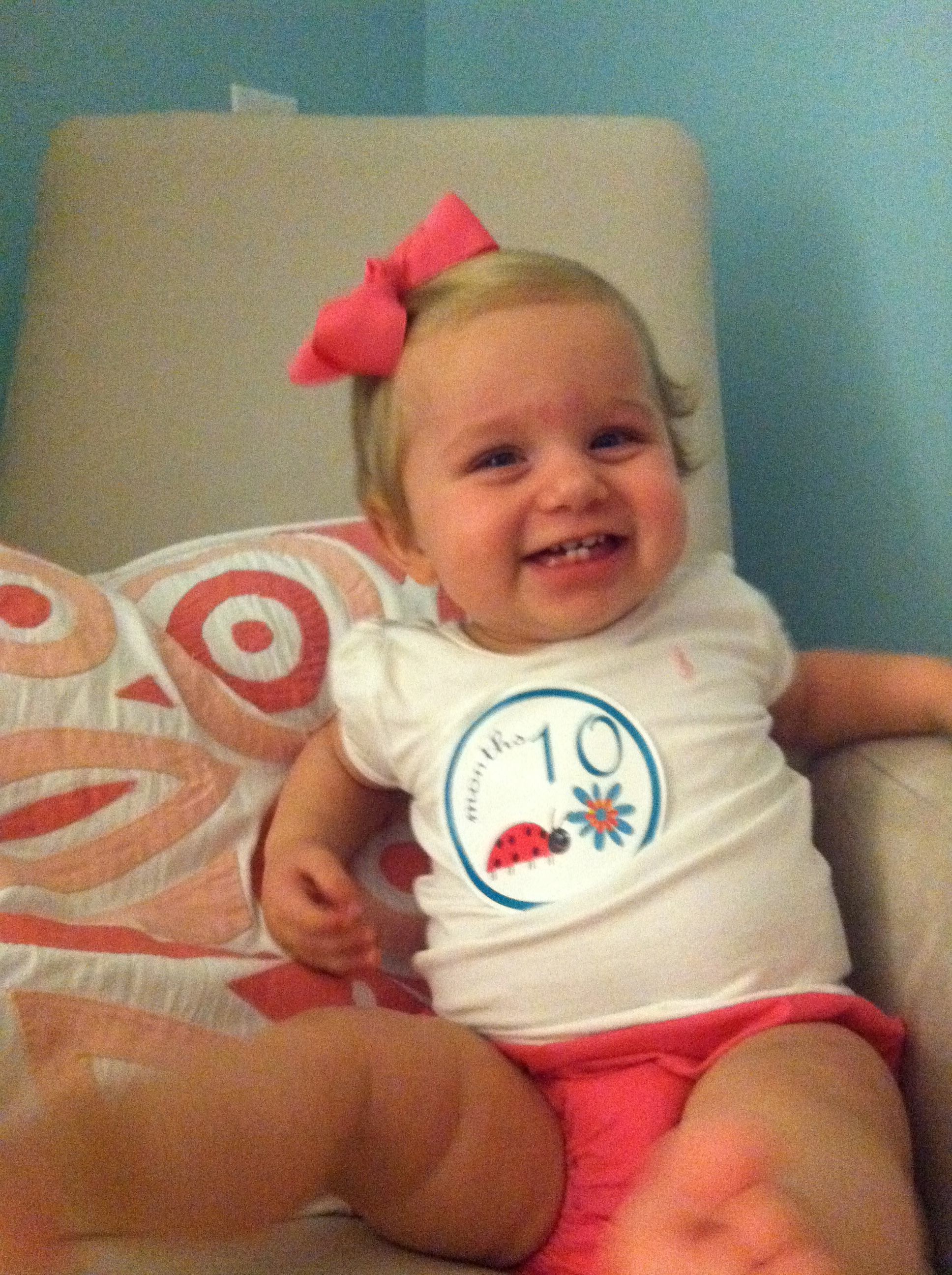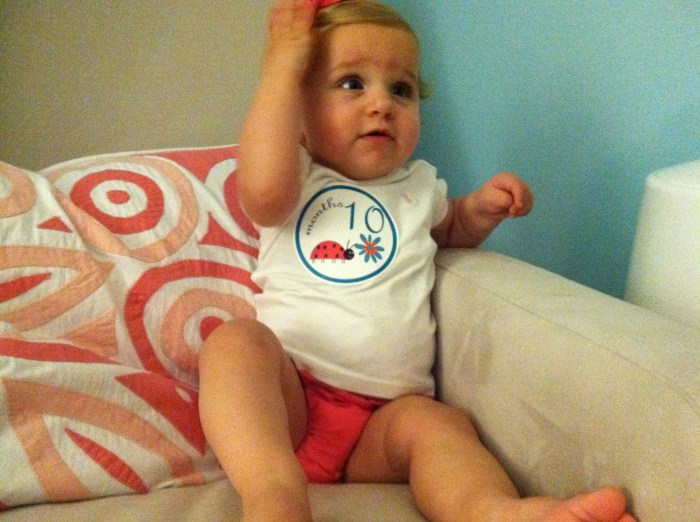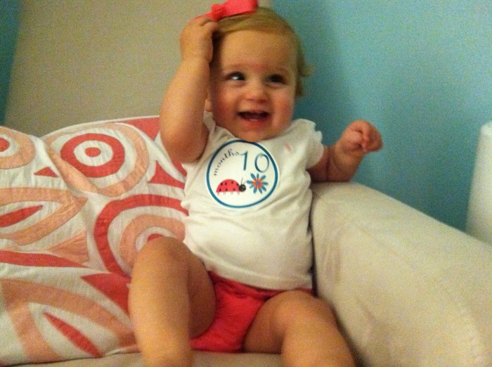 Cam turns 10 months Our not so little girl is already ten months old! It’s true what everyone tells you, it definitely does go by way too fast. Our nice camera was having some issues, so please excuse the iPhones shots. She did NOT want to keep her bow in her hair! Share this: Click to share on Facebook (Opens in new window) Facebook Click to share on X (Opens in new window) X Like Loading... Related