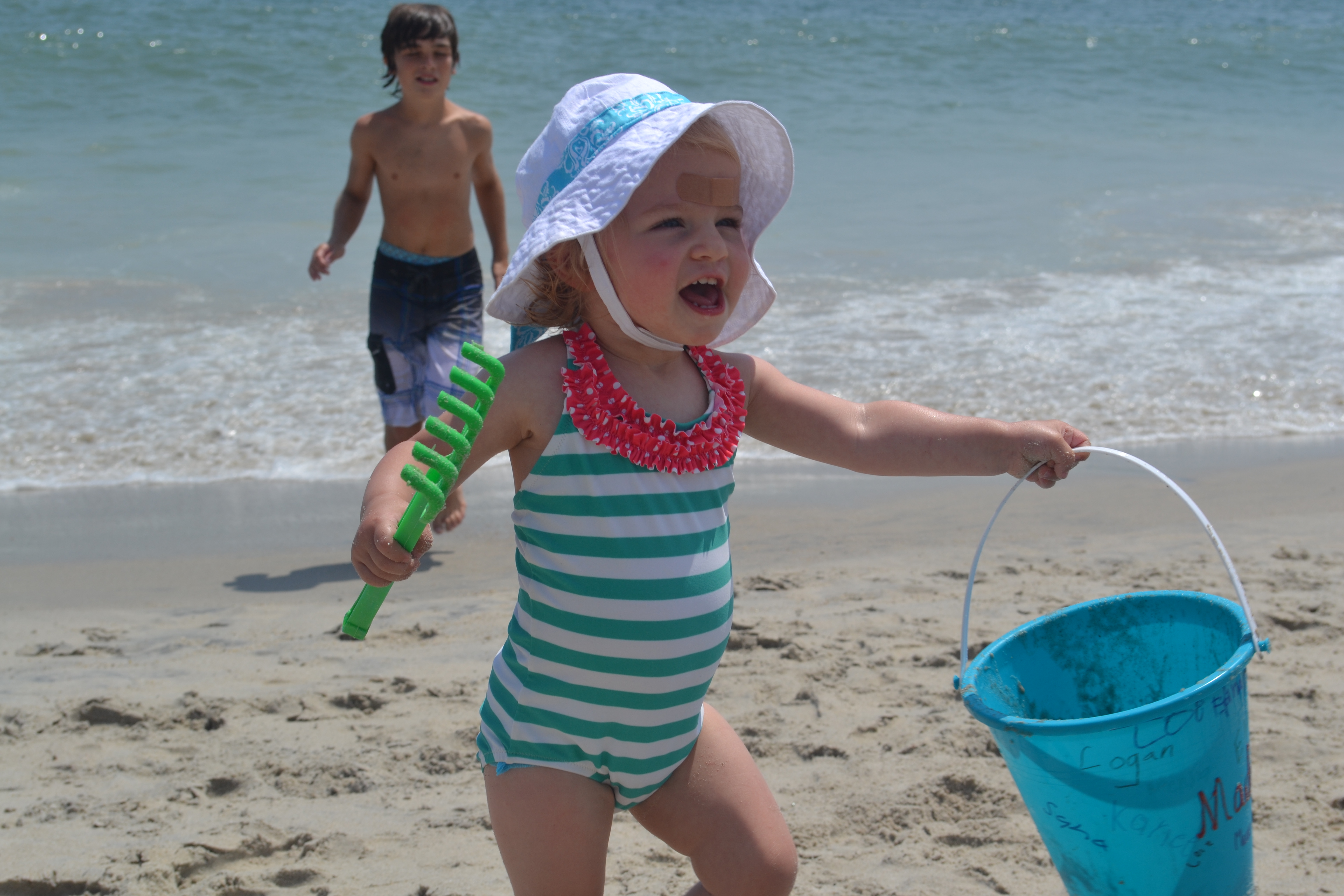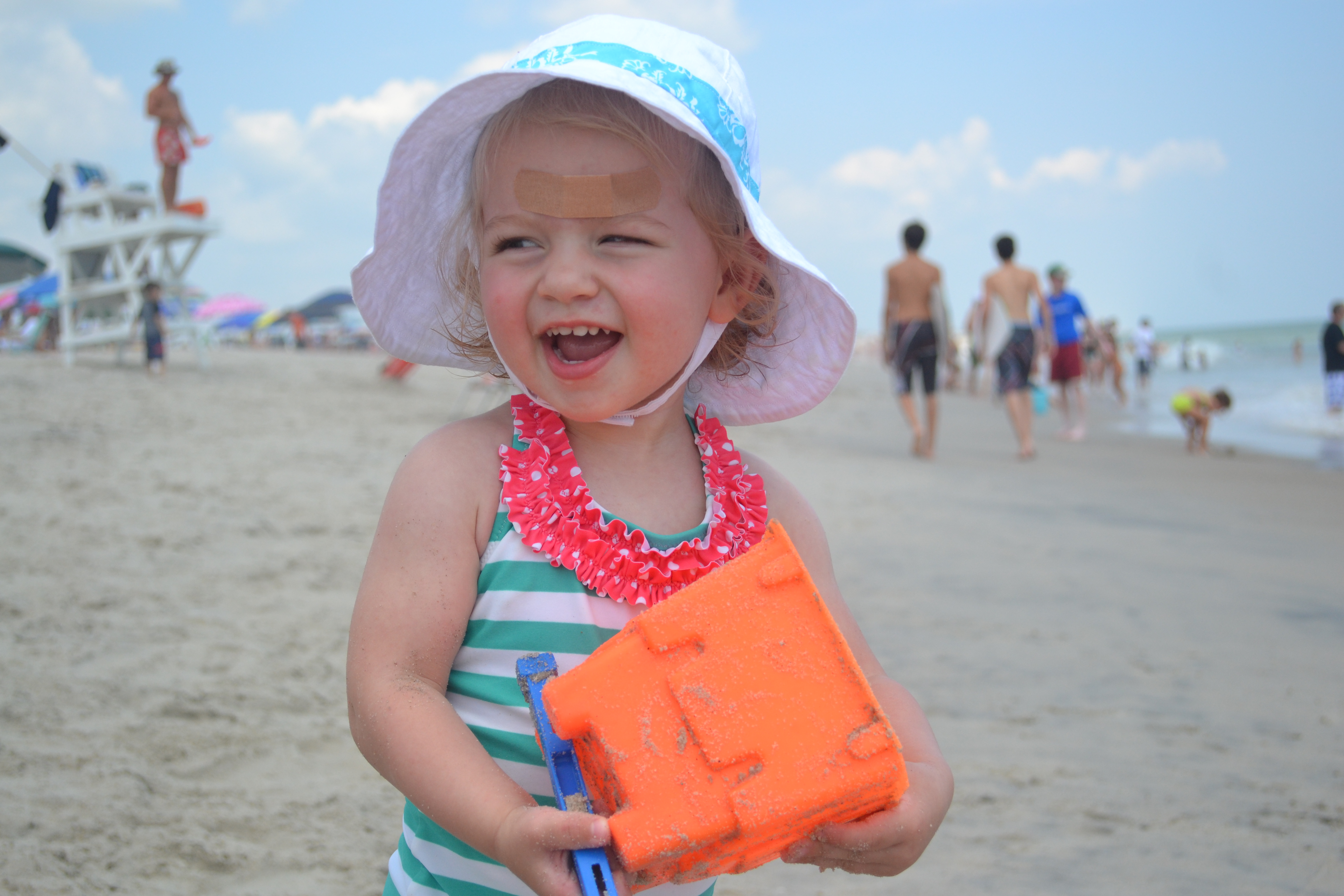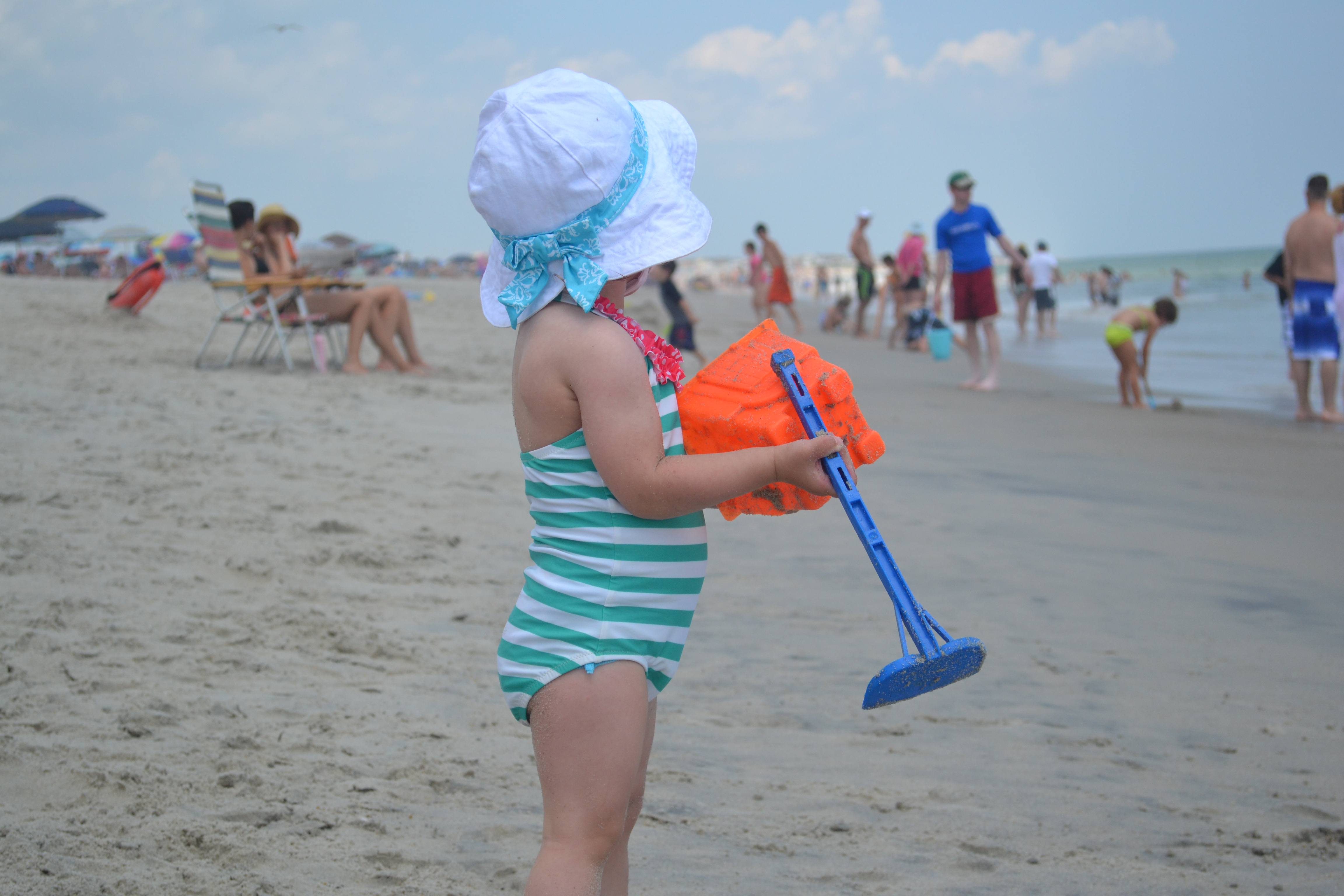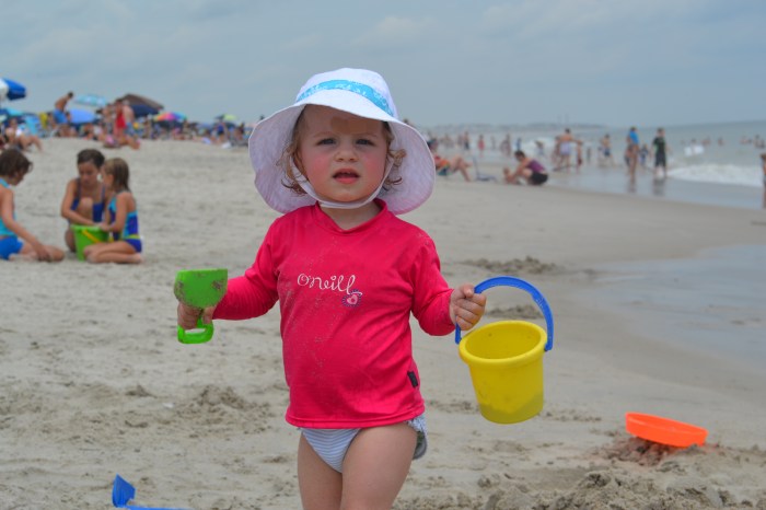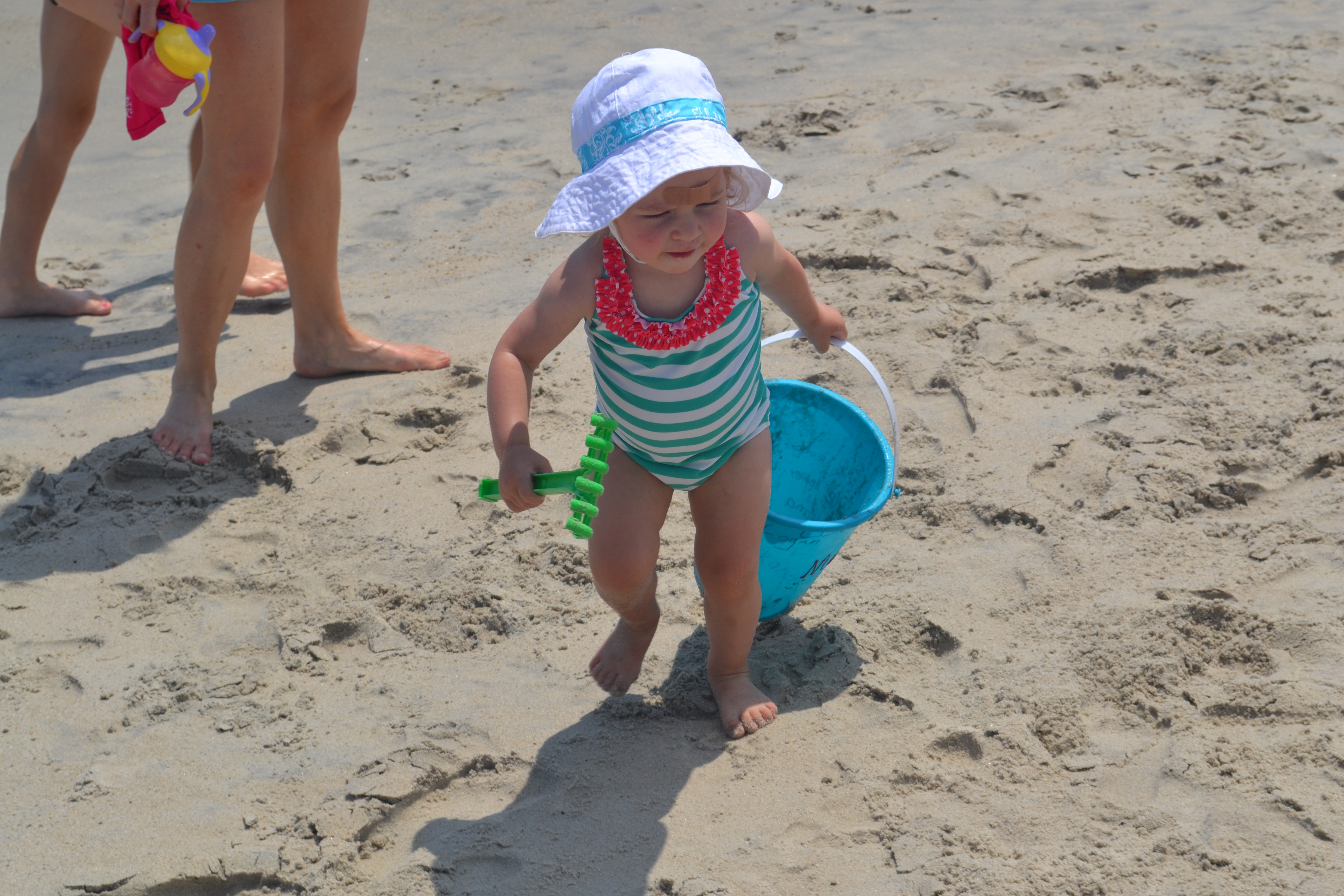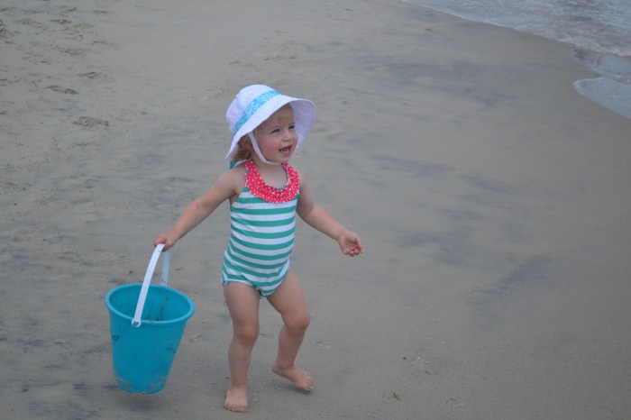 Cameron wasn’t exactly building sand castles at the beach – although she did like to destroy them – but she mostly just carried around the sand toys from place to place, occasionally dropping one bucket as she spotted a cooler shovel. She always had to have something in each hand…the kid was in heaven!